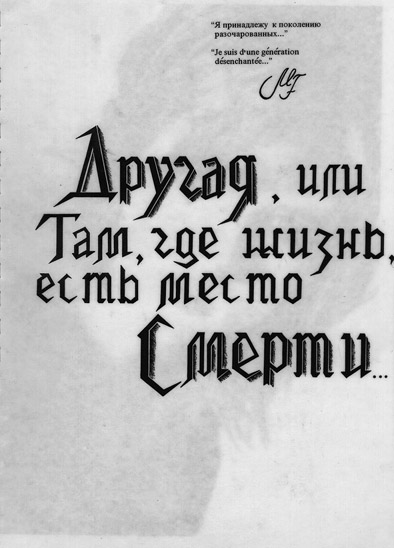 Посвящается тому, кто так же безгранично, как и я, любит Милен, тому, с кем мы влачили свое одиночество и упивались пустотой своих сердец, тому, кто понимал меня лучше меня самой, и одаривал своим благосклонным отеческим отношением. Посвящается самому ласковому и нежному диктатору, моему маленькому и очень нежному другу с ошеломляюще-прекрасным и меланхоличным взглядом своих зеленых глаз и со звучным именем Пинечка. Тому, кому сейчас очень плохо. Дай Бог тебе здоровья, мой миленький и самый любимый малыш! Мне больно, когда ты страдаешь. Да простит меня Филипп Сэги за то, что я позволила себе не по праву воспользоваться выдержками из его великолепной книги "Такая она". Да простит мою смелость Та, чье Имя смела я спрягать порой не в добром свете. Все это продиктовано лишь безумным желанием разобраться в том, что было создано прекраснейшим из тандемов, и носит название L'autre.